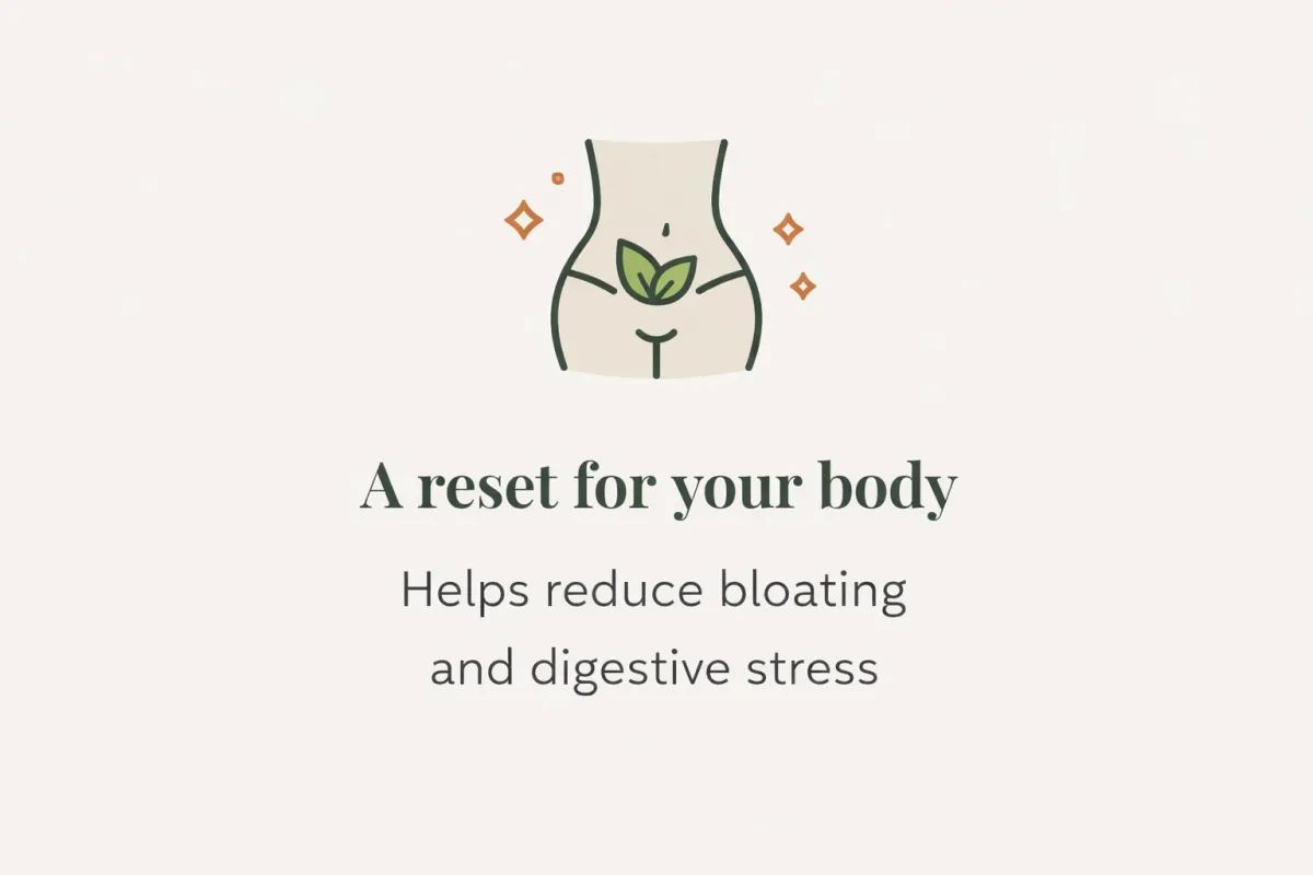 A simple daily structure that helps your body reset, reduce bloating, and rebuild consistency—without disrupting your life.